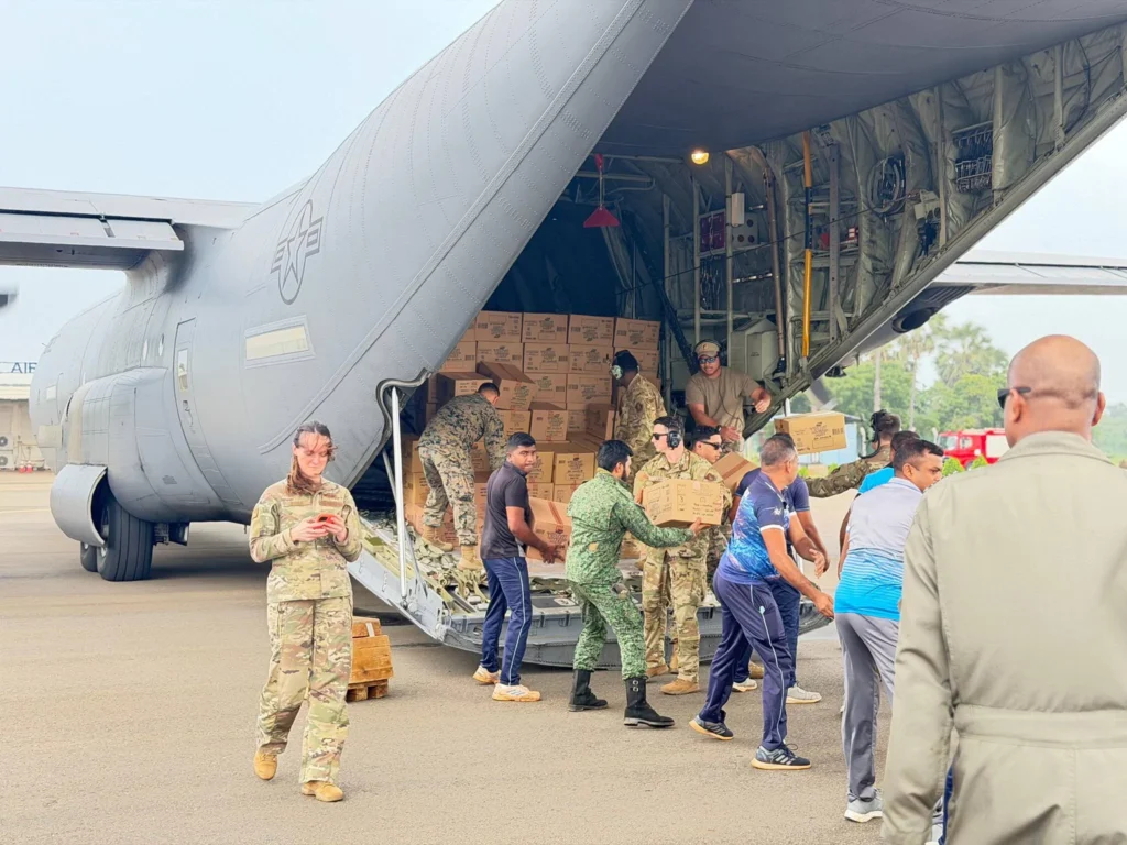 யாழ்ப்பாணம்/பலாலி, டிசம்பர் 10, 2025: ‘டித்வா’ சூறாவளியால் கடுமையாகப் பாதிக்கப்பட்ட யாழ். குடாநாட்டு மக்களுக்கு உதவும் வகையில், அமெரிக்கா அனுப்பிய அவசர நிவாரணப் பொருட்கள் அடங்கிய விசேட சரக்கு விமானங்கள் இன்று காலை யாழ்ப்பாணம் சர்வதேச விமான நிலையத்தில் (பலாலி) தரையிறங்கின. கொழும்பை மையமாகக் கொள்ளாமல், பாதிக்கப்பட்ட வடக்கு மக்களுக்கு நேரடியாக உதவும் வகையில் பலாலி விமான நிலையத்தைப் பயன்படுத்த அமெரிக்கா எடுத்த முடிவு, யாழ்ப்பாண மக்களிடையே பெரும் வரவேற்பைப் பெற்றுள்ளது.