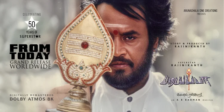 (சென்னை, டிசம்பர் 13, 2025) – சூப்பர் ஸ்டார் ரஜினிகாந்த் தனது 75-வது பிறந்தநாளை நேற்று (டிசம்பர் 12) கொண்டாடிய நிலையில், உலகம் முழுவதும் உள்ள தமிழ் திரையரங்குகள் விழாக்கோலம் பூண்டிருந்தன. இந்த விசேஷ தினத்தைக் கொண்டாடும் வகையில், 1999-ம் ஆண்டு வெளியாகித் தென்னிந்திய சினிமாவையே புரட்டிப் போட்ட ‘படையப்பா’ திரைப்படம், நவீன டிஜிட்டல் (4K & Dolby Atmos) தொழில்நுட்பத்துடன் மறுவெளியீடு செய்யப்பட்டது.