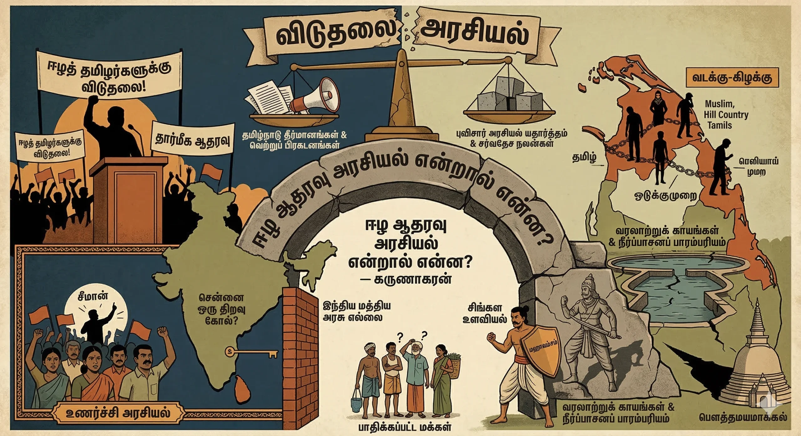 இதையெல்லாம் பார்த்தால், தமிழ்நாட்டின் அரசியல் தலைவர்களும் அரசியற் கட்சிகளும் அரசியல் அறிவே இல்லாதவர்களா? என்று கேட்கத் தோன்றும். அப்படிச் சிறுபிள்ளைத்தனமாகப் பேசுகிறார்கள். சிறுபிள்ளைத்தனமாக நடந்து கொள்கிறார்கள். உண்மையைத் துணிந்து சொல்வதென்றால், ஈழத்தமிழர்களுடைய அரசியலை உரத்த தொனியில் பேசுவதால் ஈழத்தமிழர்களின் அரசியல் மேலும் சிக்கலடைந்து கொண்டேயிருக்கிறது. ஈழத்தமிழர்களின் அரசியல் மட்டுமல்ல, இலங்கையிலுள்ள முஸ்லிம் மக்களுடைய அரசியலும் நெருக்கடிக்குள்ளாகிறது. மட்டுமல்ல, இந்தியாவிலிருந்து 1800 களில் இலங்கைக்குப் பெயர்க்கப்பட்டு இலங்கையின் மலையகப் பகுதிகளில் உள்ள மக்களின் (இந்திய வம்சாவழியினரின்) அரசியலும் நெருக்கடிக்குள்ளாகிறது. அதாவது இலங்கையில் சிறுபான்மையினராக இருக்கும் மொத்தத் தமிழ்பேசும் மக்களின் அரசியல் பாதிக்கப்படுகிறது.
